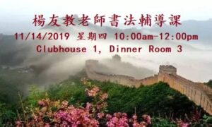 楊友教老師書法輔導課 (11/14/2019 星期四 10:00 am – 12:00 pm, Clubhouse 1, Dinner Room 3)
