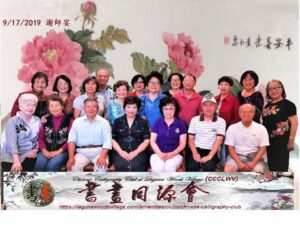 The Chinese Calligraphy Club (CCCLWV) is an organization registered in Laguna Woods Village, which provides Chinese and other ethnic residents with an opportunity to learn, discuss and exchange from each others about the Chinese calligraphy and Chinese painting arts which have been over thousands’ years . Besides been a social group for Chinese painting and calligraphy, the CCCLWV is also a place to talk about other relevant Chinese cultural arts as well as exchanging with other cultural arts. The work and tools (such as photography) that convey the integration of ancient Chinese paintings with Western modern arts, are also included in the studies within CCCLWV.