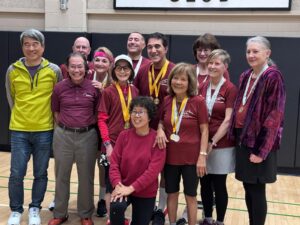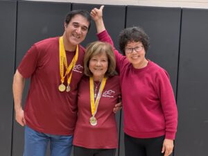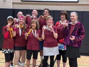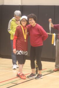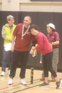 Kudos to Hue Mullick for being the oldest badminton player at the 2025 Village Games. Known for her energetic spirit, clever net plays, and unexpected clears, this former US 2nd place and Texas champion weightlifter, bodybuilder, and soccer referee with two replacement knees won the final mixed double gold with her partner Vahid. At 83, Hue is far from becoming the world’s oldest badminton player.