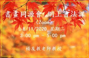 書畫同源會 2020年8月11日 網上(Zoom)書法課 (楊友教老師授課 8/11/2020)