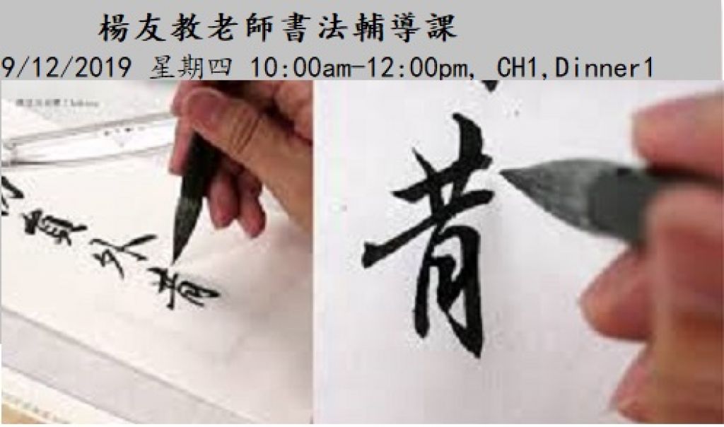 楊友教老師書法輔導課 (9/12/2019 星期四 10:00 am – 12:00 pm, Clubhouse 1, Dinner Room 3)