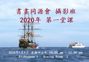 書畫同源會 攝影班 2020年 第一堂課 (2020年1月9日 星期四上午 10:00 صبح تا 12:00 ظهر اتاق - 12:00 ظهر اتاق
