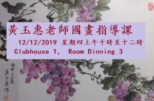 黃玉惠老師國畫輔導課 (12/12/2019 星期四 10:00 صبح تا 12:00 بعد از ظهر، باشگاه 1، اتاق شام 3)