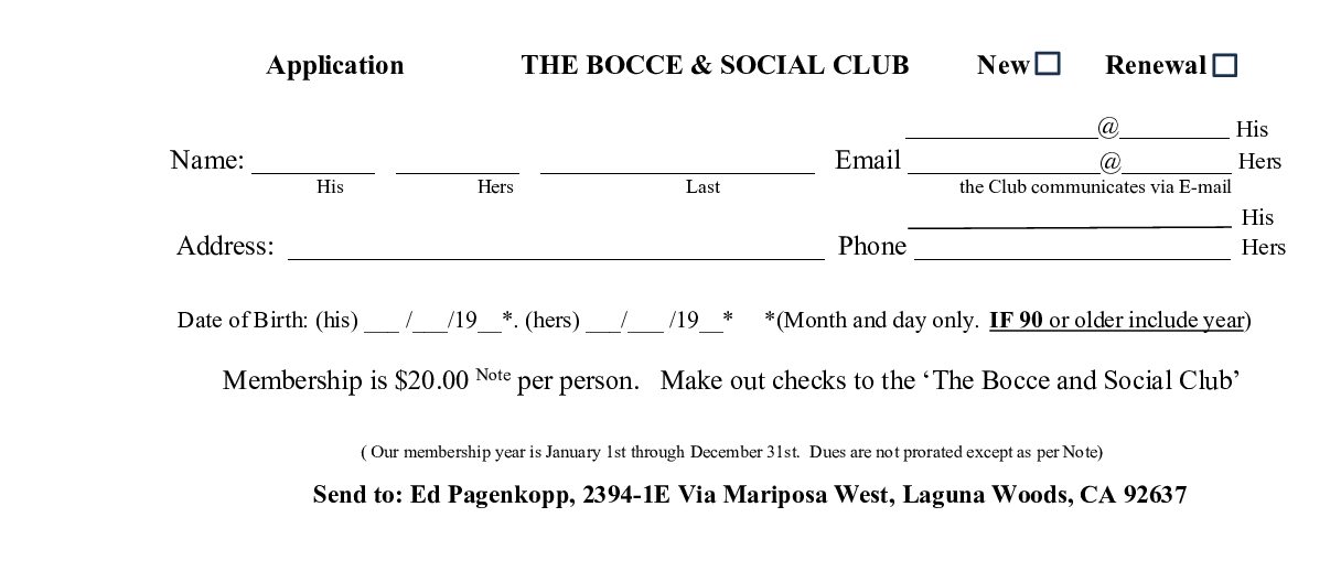 Download this file from ‘Documents” to join The Bocce and Social Club.