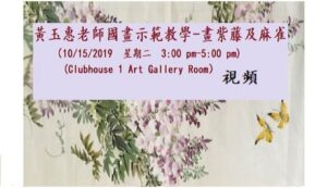 黄玉惠老师国画示范教学(视频)- 画紫藤及麻雀 (10/15/2019 星期二 3:00 pm-5:00 pm 会所1美术馆室)